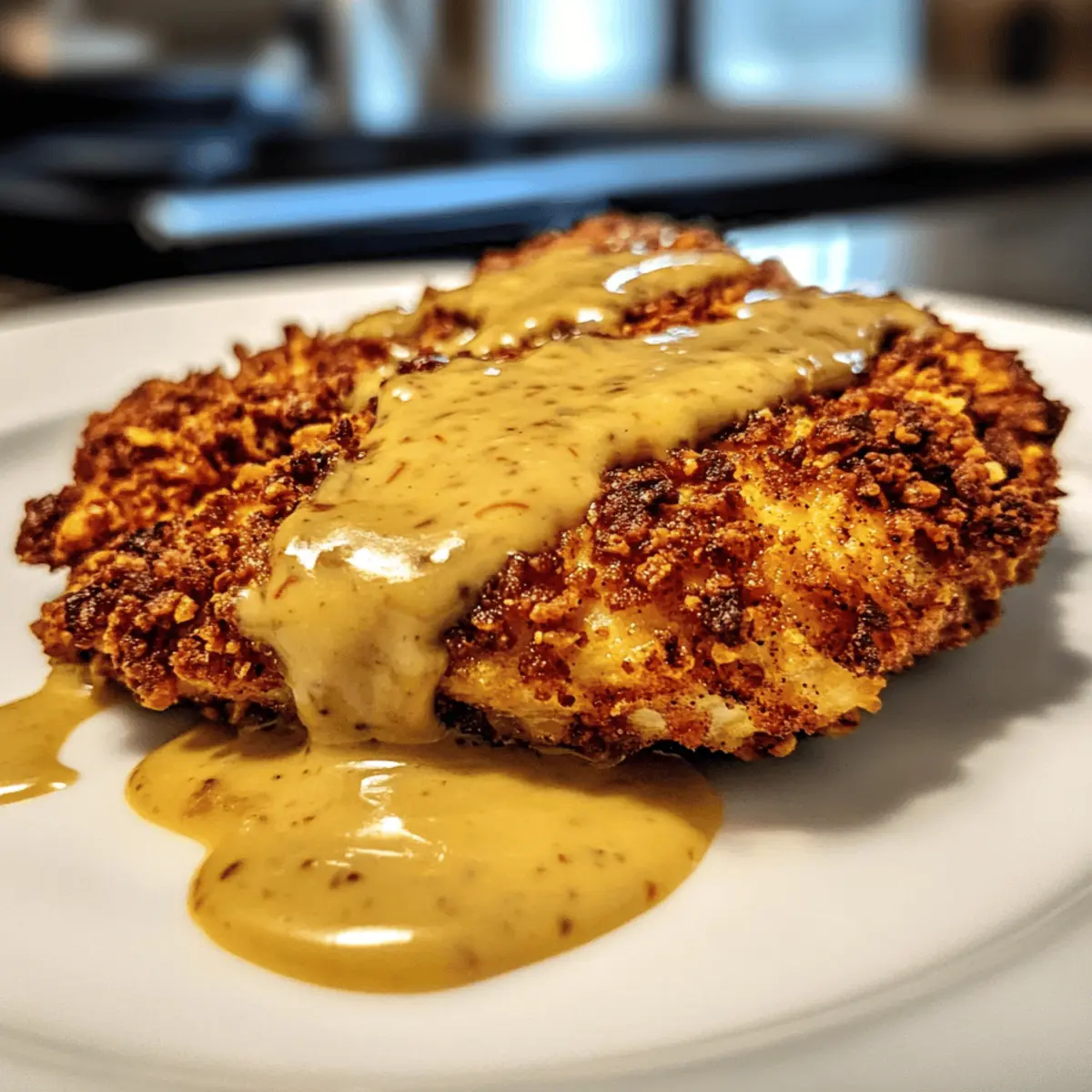 Explore Variations: Feel free to switch out the chicken for pork chops or fish; these alternatives work great with the pretzel coating, keeping your Pretzel Chicken with Mustard-Cheddar Sauce experience exciting every time!