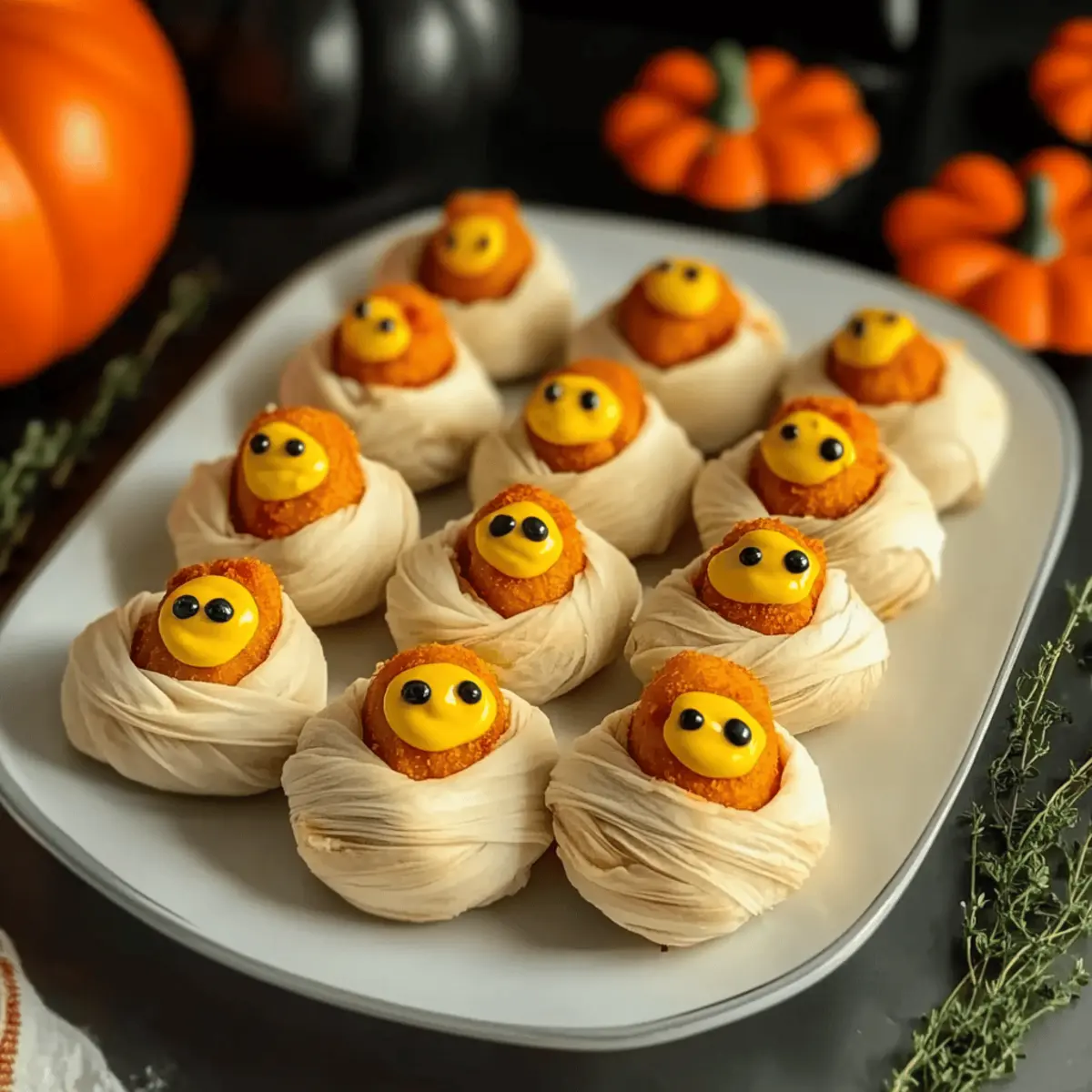 Mummy Meatballs: Serve up some mini meatballs, wrapped in crescent roll dough to resemble mummies. They’re a fun, hearty complement to the lighter deviled eggs.