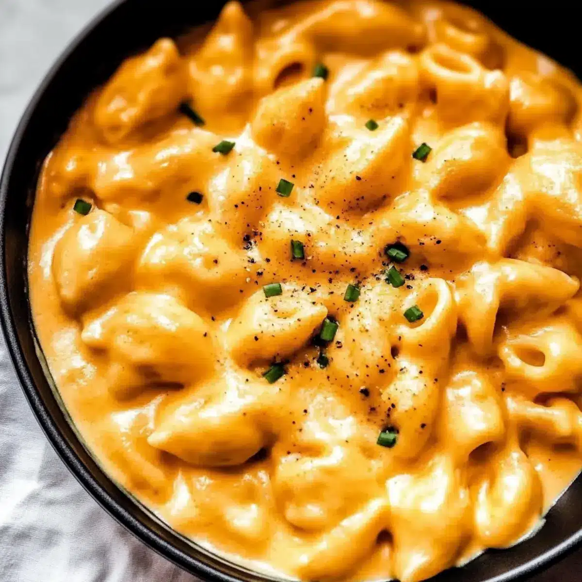 Final season your creamy pumpkin mac and cheese with salt and freshly cracked pepper to taste. Once seasoned, serve immediately in bowls. Optionally, garnish each serving with freshly chopped chives for a pop of color and flavor. Dive into this warm, comforting dish that brings the essence of fall right to your table!
