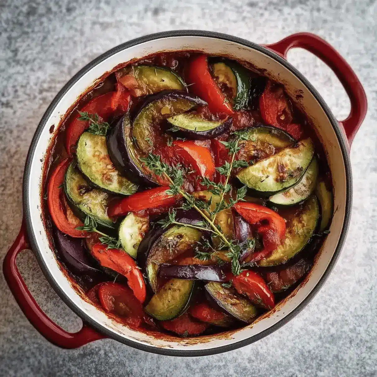 - Before serving, drizzle in the balsamic vinegar, stirring gently to brighten the flavors. Allow the Ratatouille to cook for an additional 5 minutes on low heat.