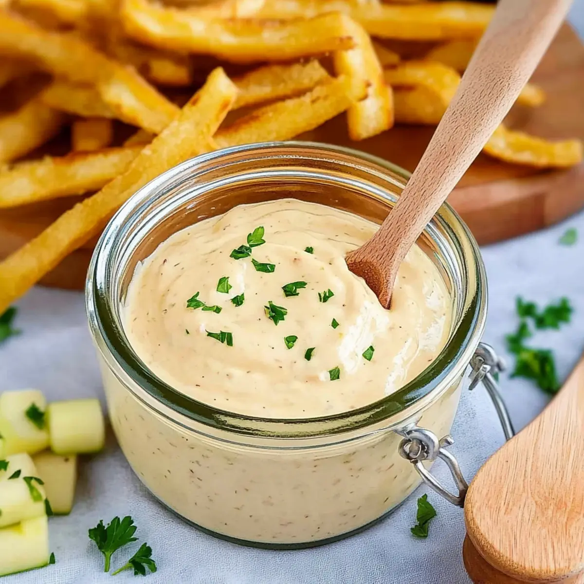 If desired, chop fresh parsley or chives and mix them into your aioli for a vibrant touch. Transfer the aioli to an airtight container and refrigerate for at least 30 minutes to allow the flavors to meld beautifully. This step not only thickens the aioli but enhances its taste, making it even more irresistible!