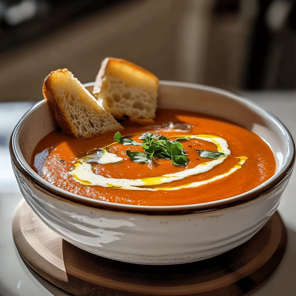 Crusty Bread: Perfect for dipping, this crunchy delight contrasts beautifully with the creamy texture of the soup, creating an inviting bite.