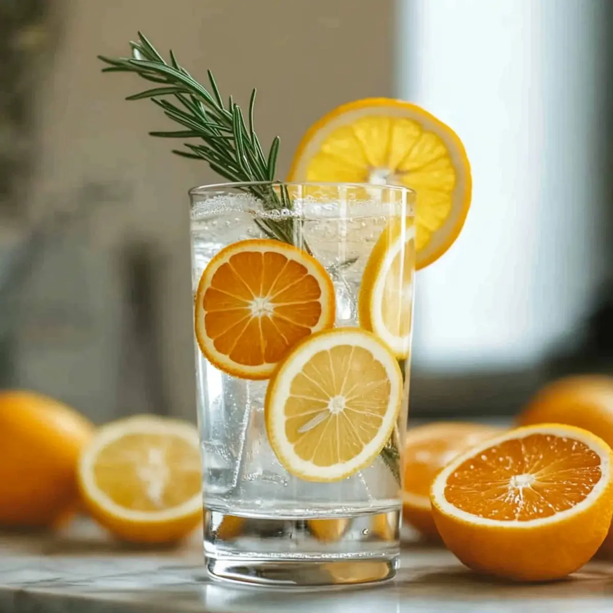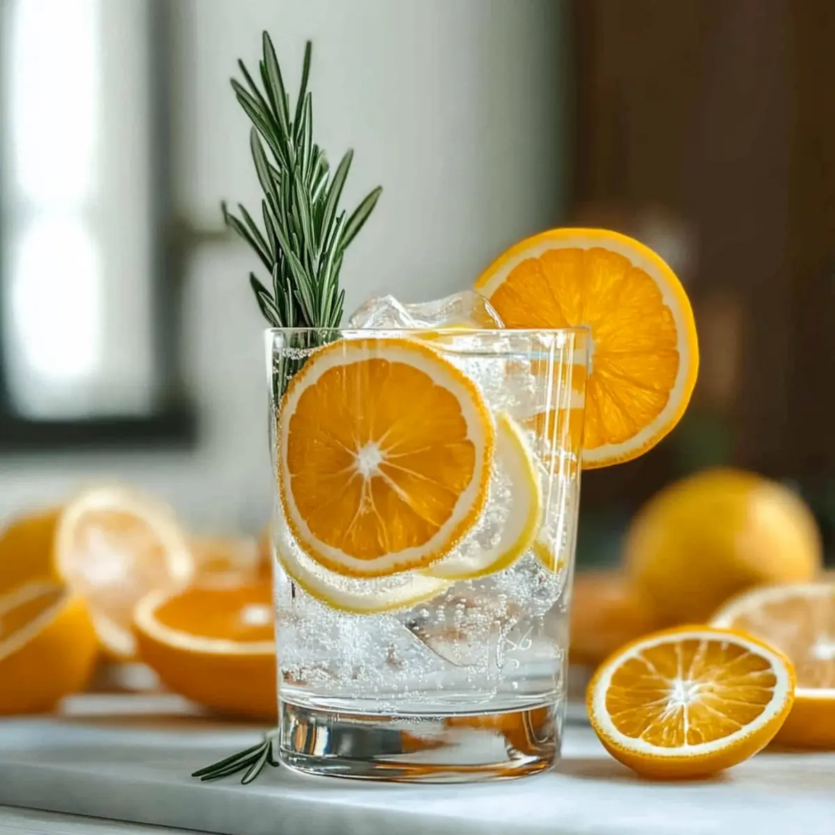 - Fresh Rosemary Sprig – Infuses a delightful herbal aroma, creating a refreshing base.