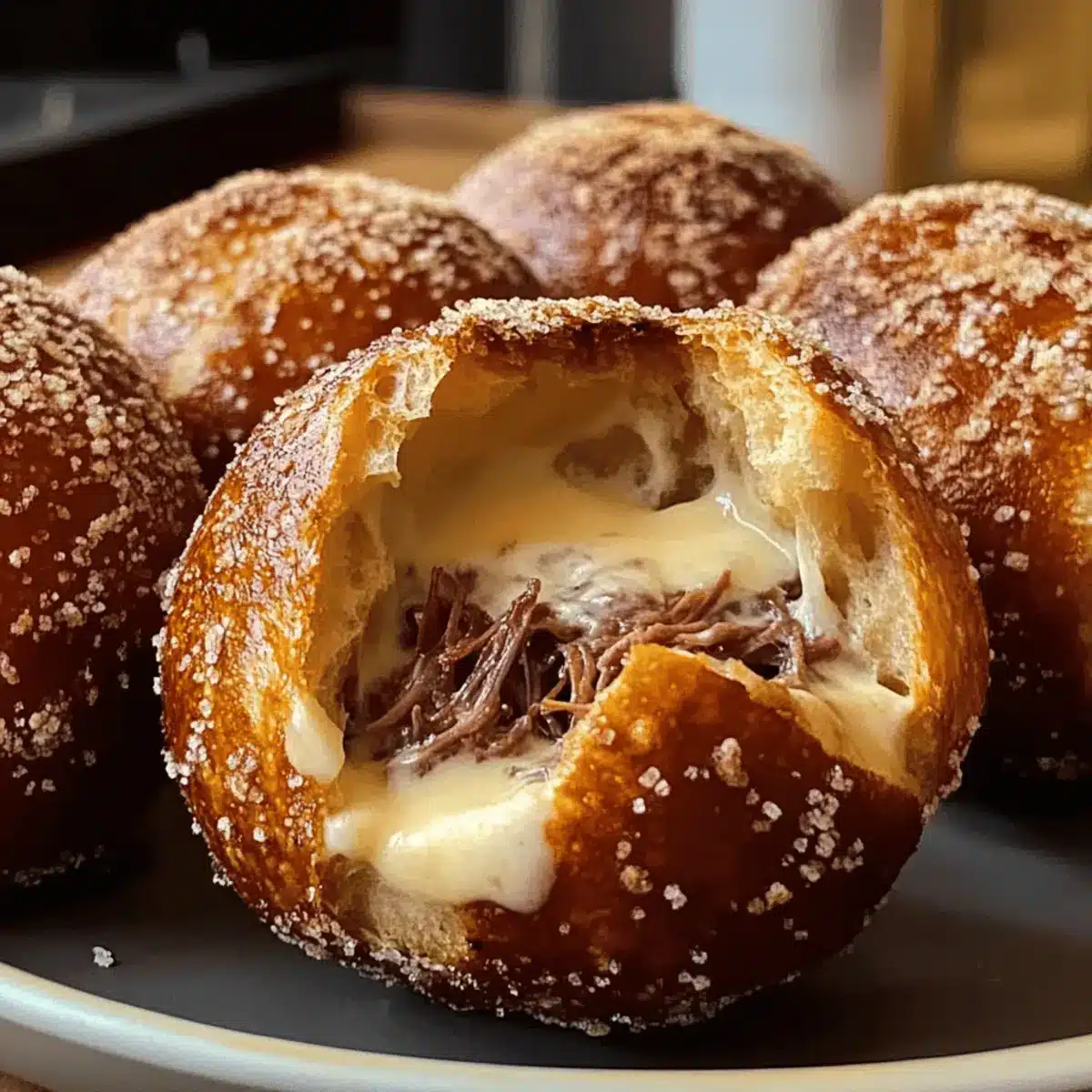 Once baked, let the pretzel bombs cool for a few minutes on a wire rack. Serve them warm as a delightful appetizer, paired with a side of spicy mustard or homemade barbecue sauce for dipping. These heavenly bites are guaranteed to be a hit at your next gathering, showcasing the irresistible combination of flavors from the smoky brisket and gooey cheese filling.