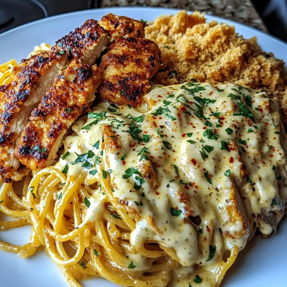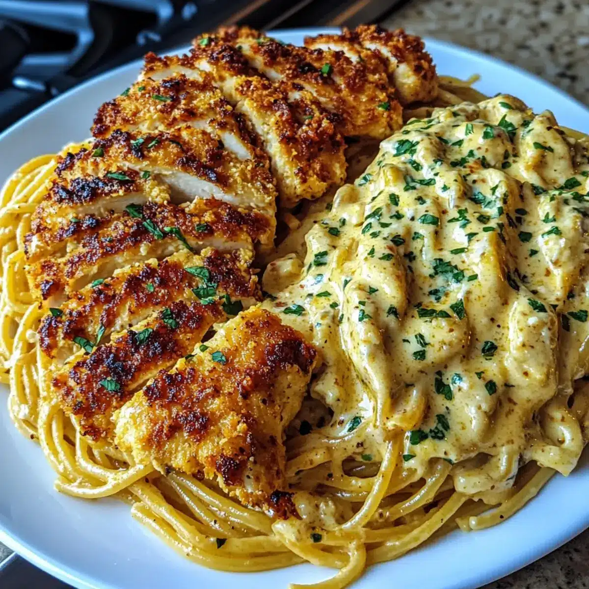 Very! For those with dairy allergies, you can easily make this dish dairy-free by using plant-based cheeses and swapping the cream for a dairy-free alternative. Additionally, for gluten-free options, simply use gluten-free spaghetti. If you want to prepare a vegetarian version, substituting the chicken with roasted veggies or plant-based protein works wonderfully without sacrificing flavor!