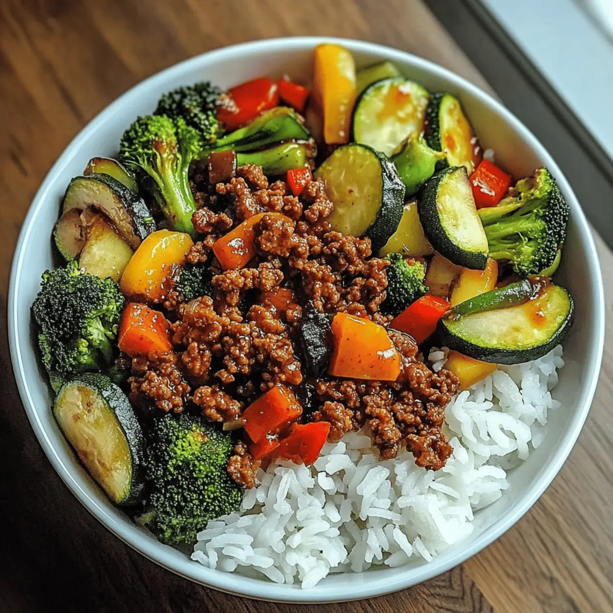 As the scent of garlic wafts through the kitchen, I can’t help but feel a rush of excitement. Weeknight dinners can often become routine, but my Spicy Ground Beef Stir-Fry Bowl with Garlic Veggies & Steamy Rice is anything but ordinary. This dish combines spicy ground beef with fresh, garlic-sautéed vegetables, all nestled over a fluffy bed of rice, making it a vibrant and satisfying option for busy evenings. What I adore most is how quickly it comes together—ready in just 30 minutes—and its customizable nature, allowing you to swap in your favorite veggies or proteins. It’s the perfect antidote to the fast-food trap and brings that homemade comfort straight to your table. Are you ready to whip up a satisfying meal that will make your taste buds dance?