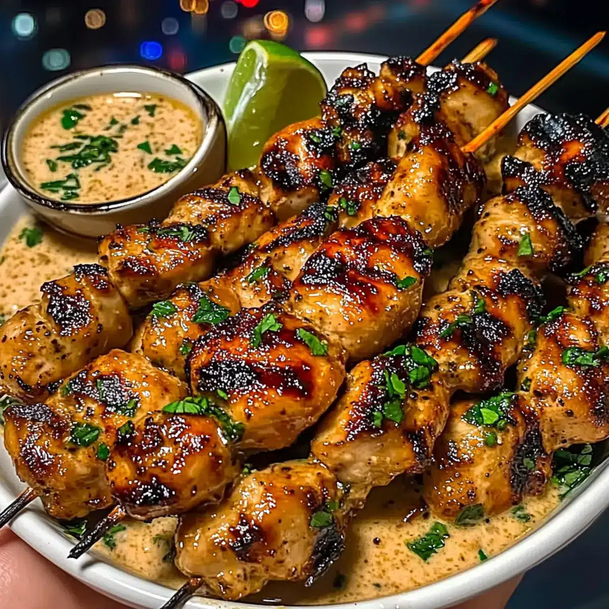 Spicy Honey Chicken Skewers with Garlic Lime Sauce Delight