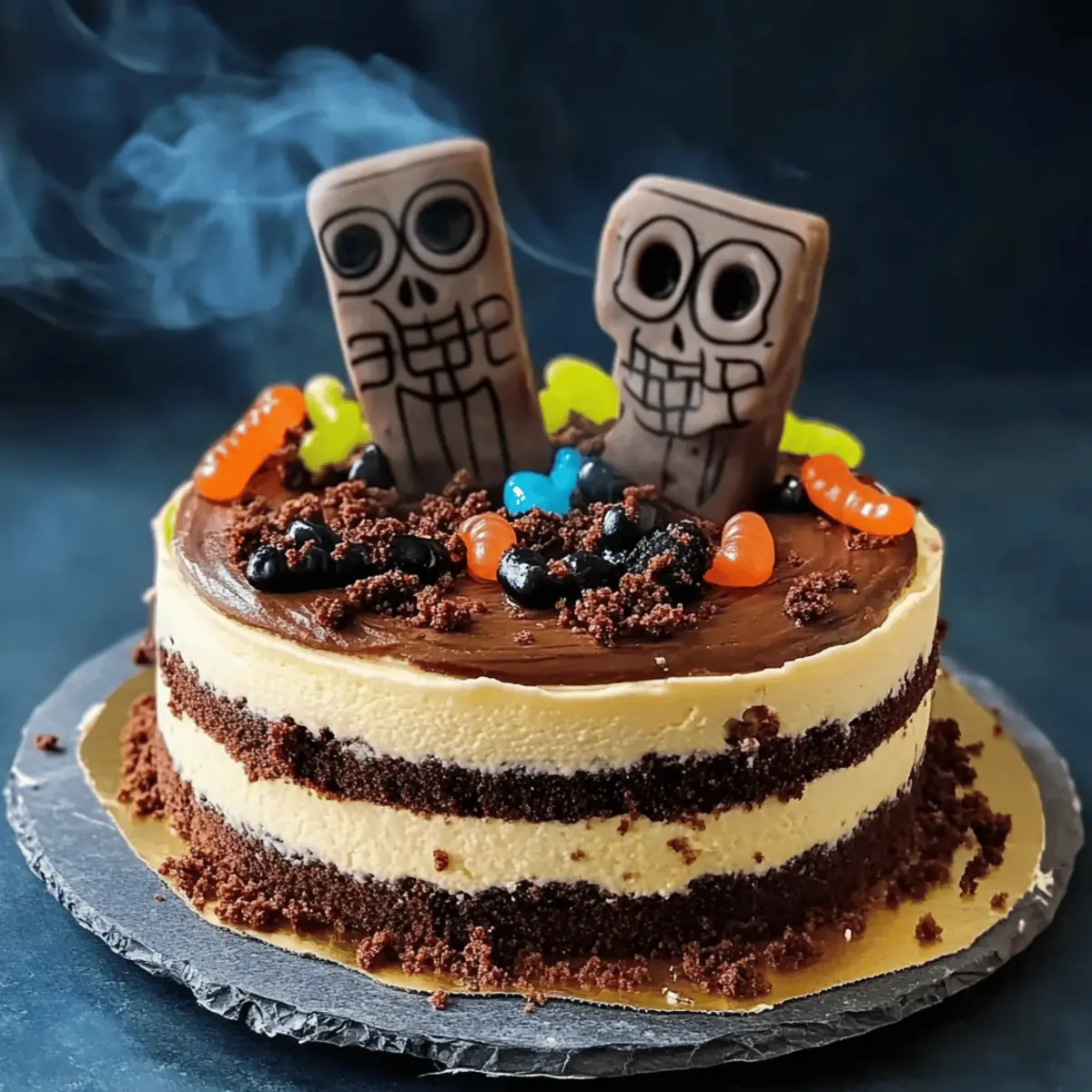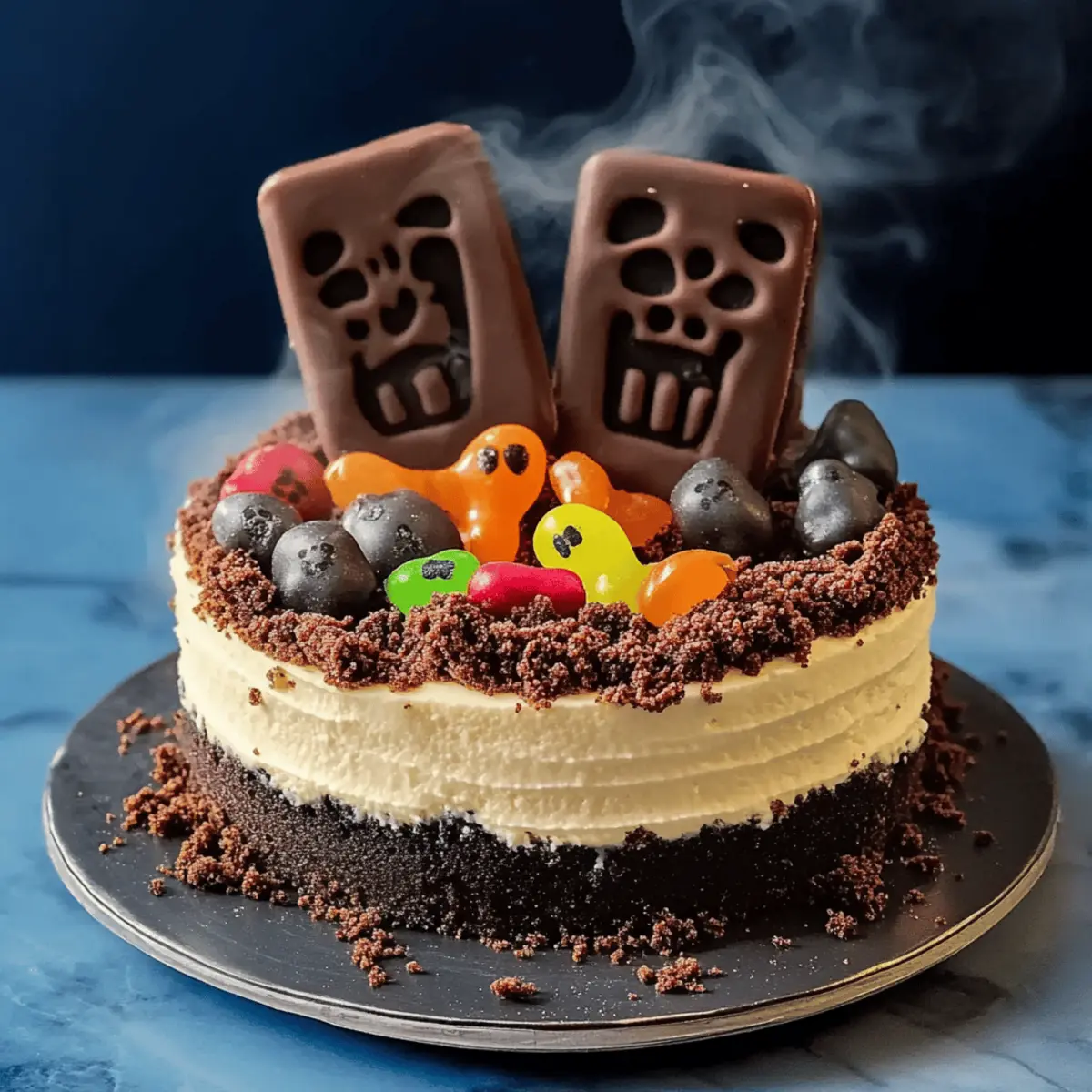 • Crushed Oreos – Mimics dirt on the cake’s surface, enhancing its spooky look; use chocolate graham crackers for a twist.