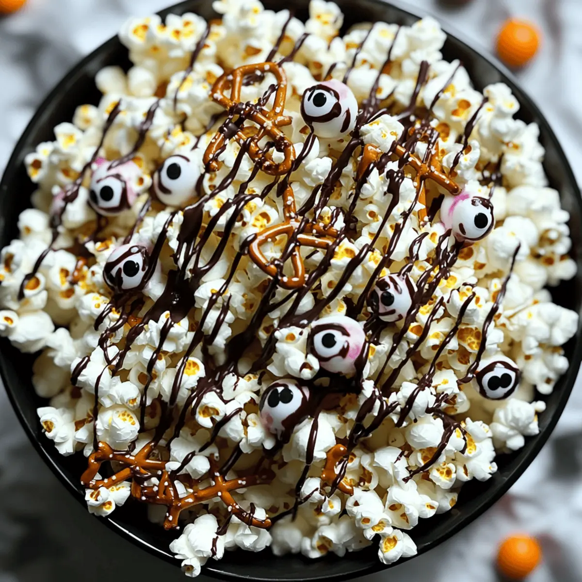Visual Appeal: Ghoulishly decorated with candy eyes and edible spider webs, this popcorn snack elevates your Halloween festivities impressively.