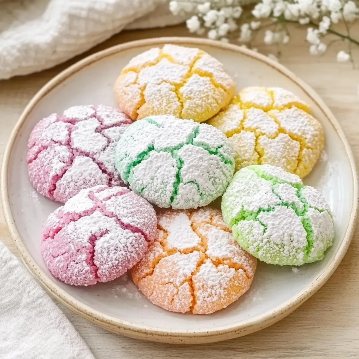 Baking Watch: Keep an eye on the cookies while they bake. They should look slightly underbaked in the centers to ensure that delightful chew when you enjoy your Springtime Crinkle Cookies.