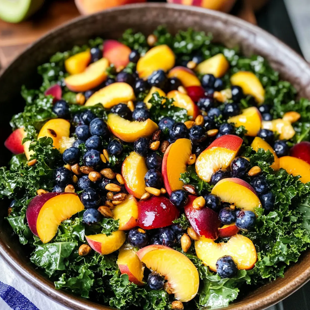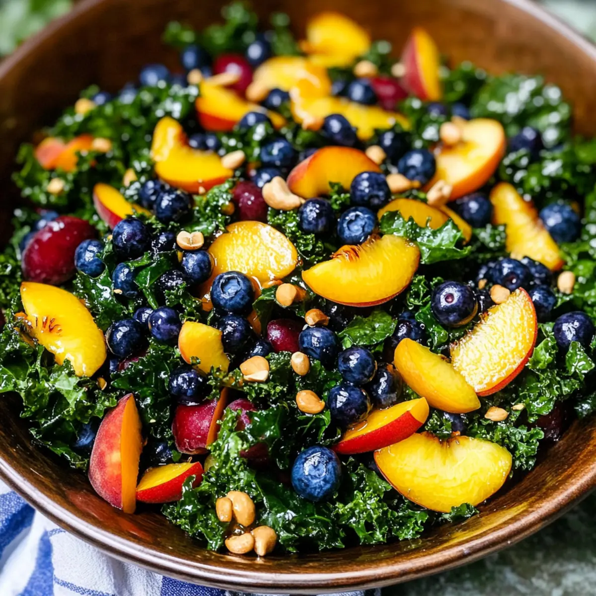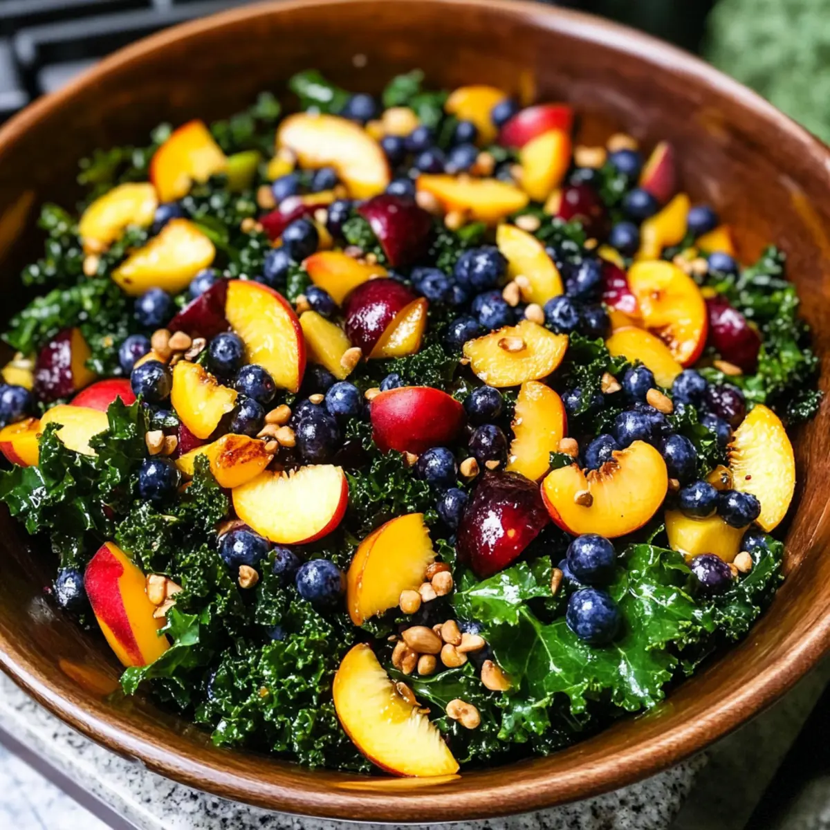 Delicious Summer Peach Blueberry Kale Salad You’ll Love