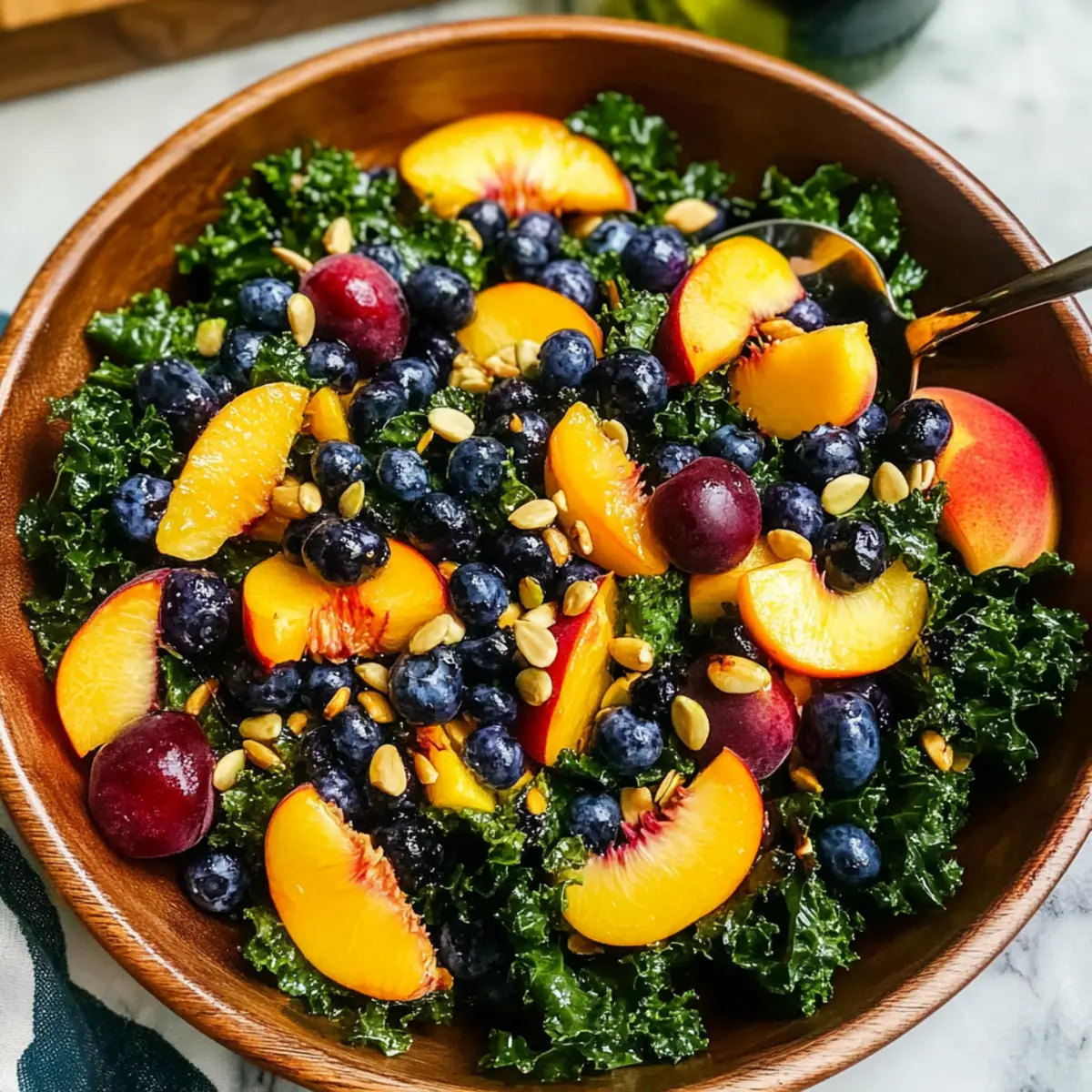 - Use Fresh Ingredients: Always choose ripe peaches and fresh blueberries for the best flavor; they truly elevate your summer peach blueberry kale salad.