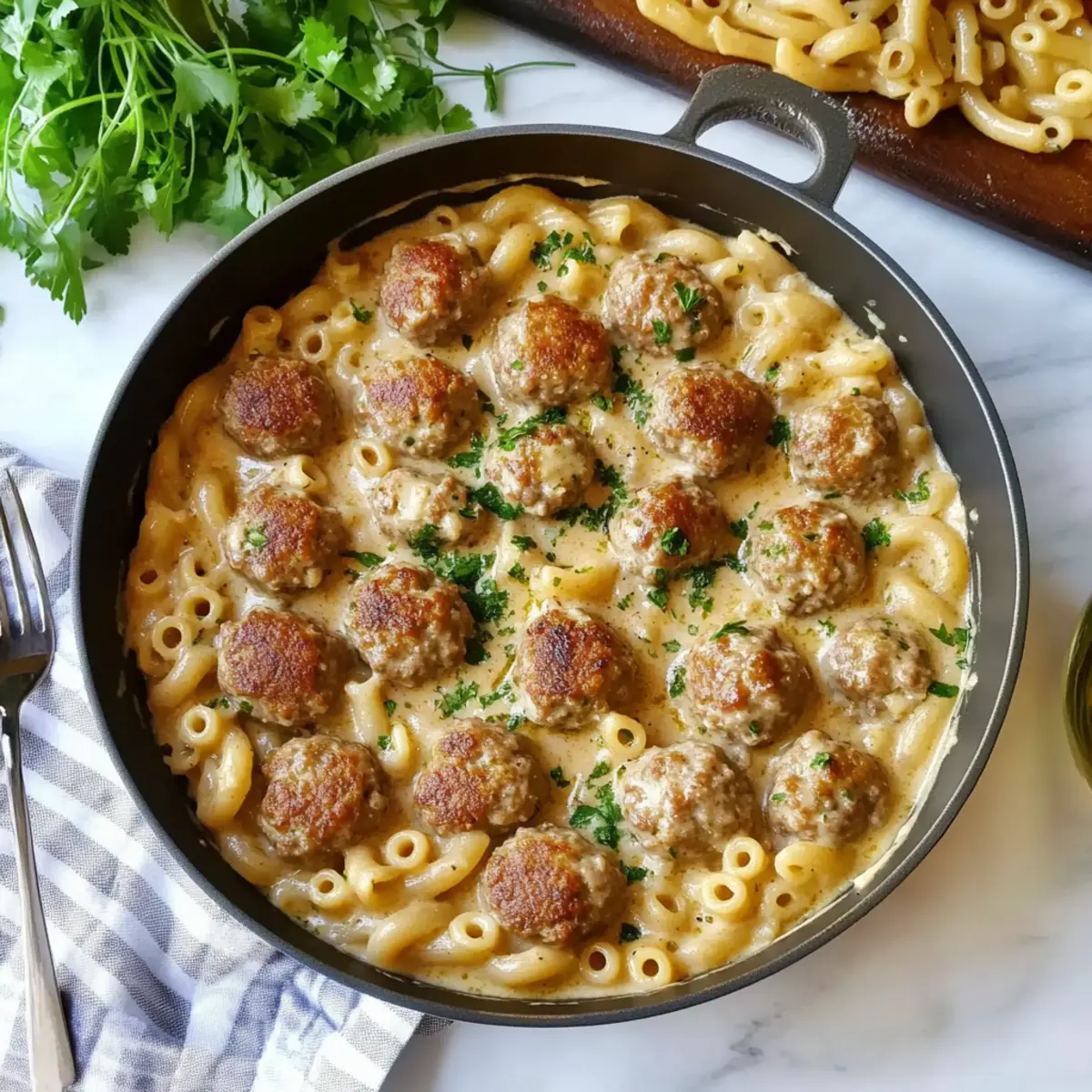 Immediately serve the Swedish Meatball Pasta on warm plates, garnishing with additional fresh parsley if desired. The comforting combination of creamy sauce, tender meatballs, and perfectly cooked pasta will warm hearts and bellies alike—perfect for family dinners or a cozy weeknight meal.