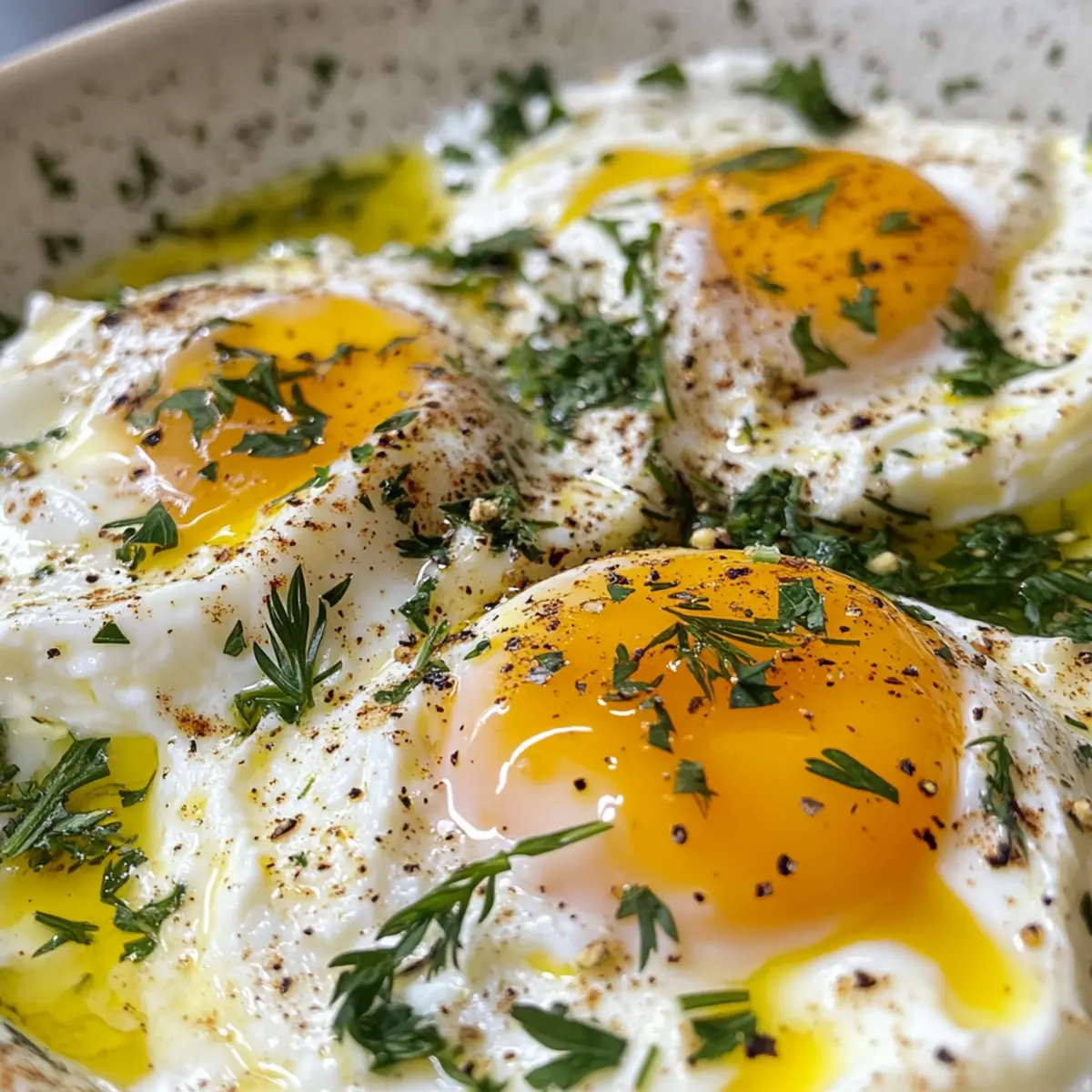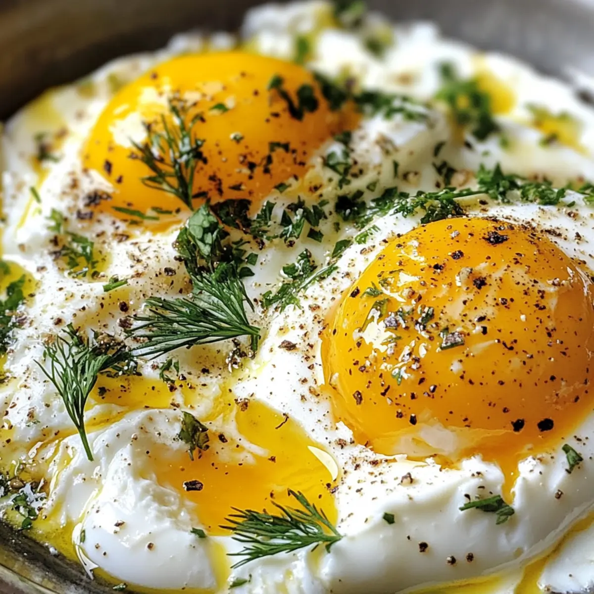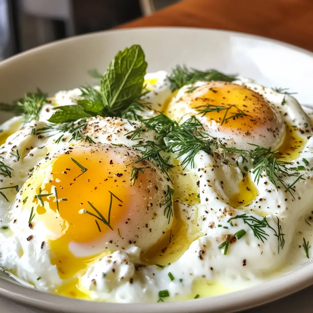 On shallow bowls or plates, generously spread the herbed yogurt mixture from Step 1. Carefully place two poached eggs on top of each serving, allowing the creamy yogurt to cradle them. Drizzle the warm, spiced butter sauce over the eggs and garnish with a sprinkle of fresh dill or mint and a touch of flaky sea salt. Serve your Turkish Eggs with Creamy Yogurt & Butter Sauce immediately alongside warm pita or crusty bread for dipping.