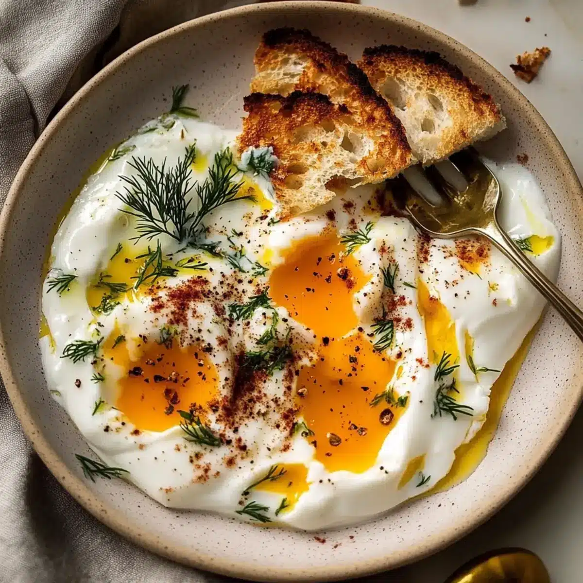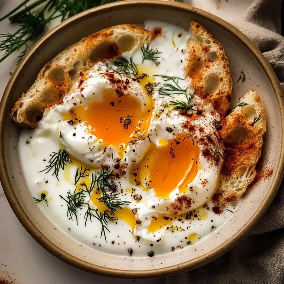 Deliciously Unique: Turkish Eggs with Herbed Yogurt, or Çılbır, is a delightful twist on traditional breakfasts that combines tangy yogurt with perfectly poached eggs.