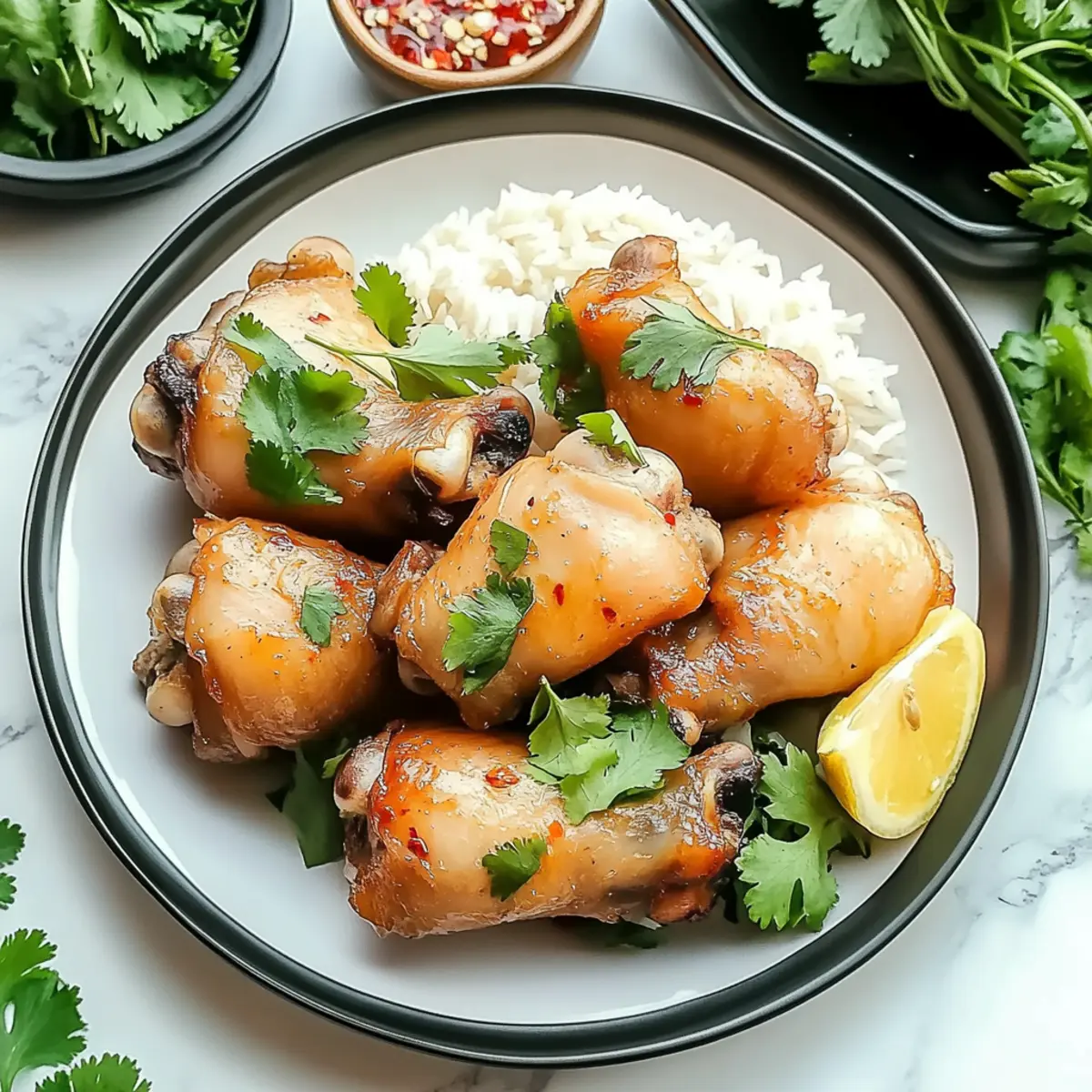 Once baked, remove the chicken from the oven and let it rest for a few minutes to maintain juiciness. Serve your Vietnamese Lemongrass Chicken hot over a bed of steamed rice, and garnish with sliced green onions and freshly chopped cilantro for a pop of color and added flavor.